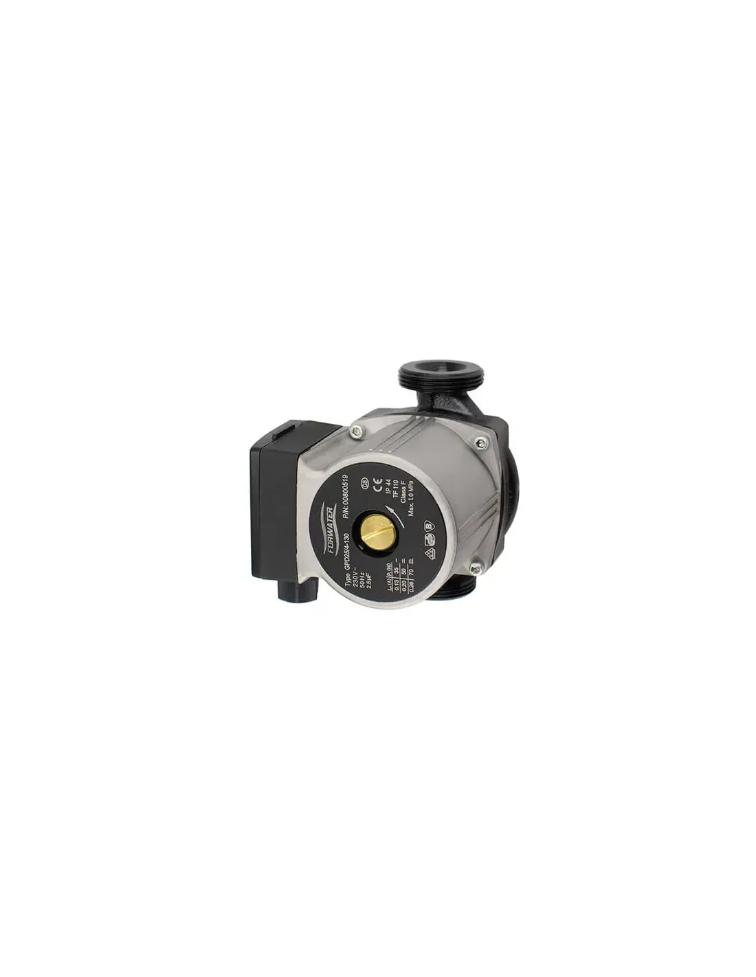 Циркуляционный насос Forwater GPD 25/4-130 с гайками предназначен для циркуляции воды в бытовых системах отопления с ограниченным монтажным пространством. Максимальная производительность насоса — до 3 м3/час или 50 литров в минуту. Подключение к трубе диаметром 25 мм. Имеет три рабочих скорости. Максимальный напор до 4 метров. Мощность двигателя до 0,06 кВт. Тихая работа двигателя. Диаметр подключения к насосу — 1.5 дюйма (гайки в комплекте на 1 дюйм). Монтажная длина: 130 мм. Материал изделия насоса — чугун. Поставляется без кабеля. Страна производитель: Китай. Гарантия 12 месяцев.