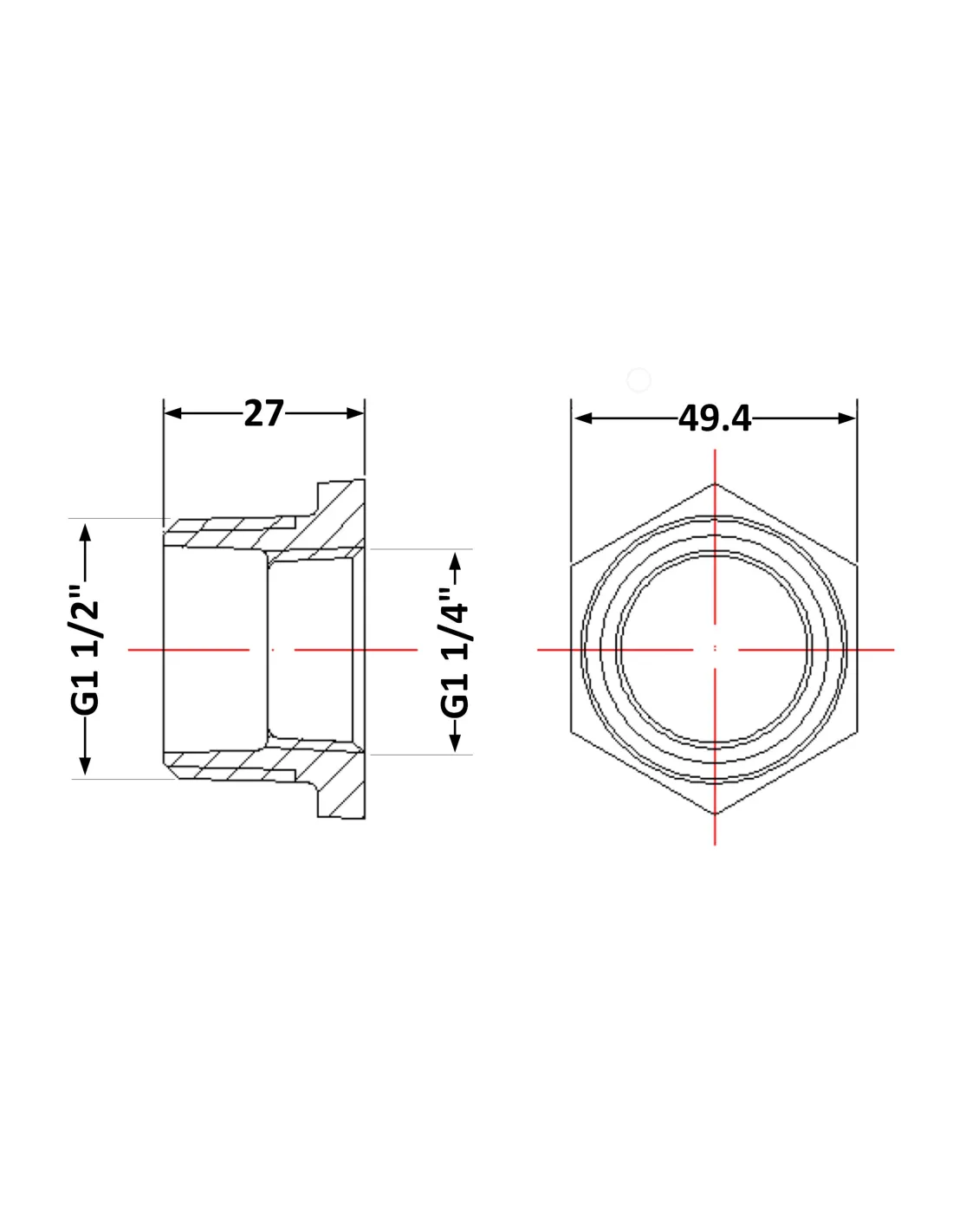 - Тип резьбы: Внутренняя 1 1/2 дюйма с переходом на 1 1/4 дюйма наружная (НР);