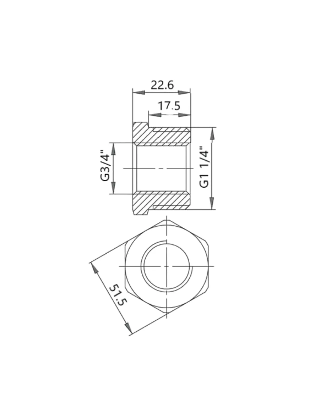 - Тип резьбы: Внутренняя 1 1/4 дюйма с переходом на 3/4 дюйма наружная, левая (ВН);