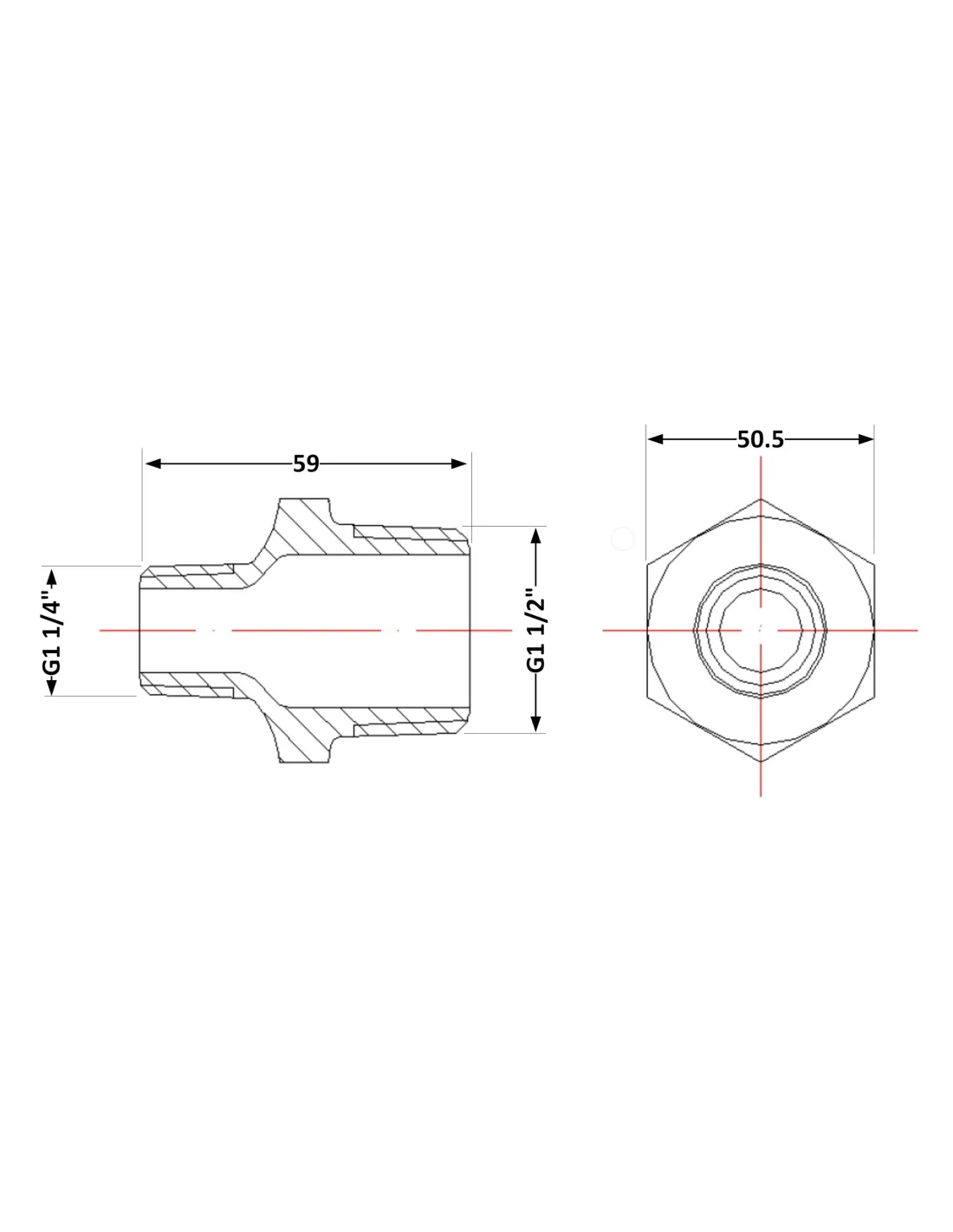 - Тип резьбы: Наружная 1 1/2 дюйма с переходом на 1 1/4 дюйма наружная (НР);