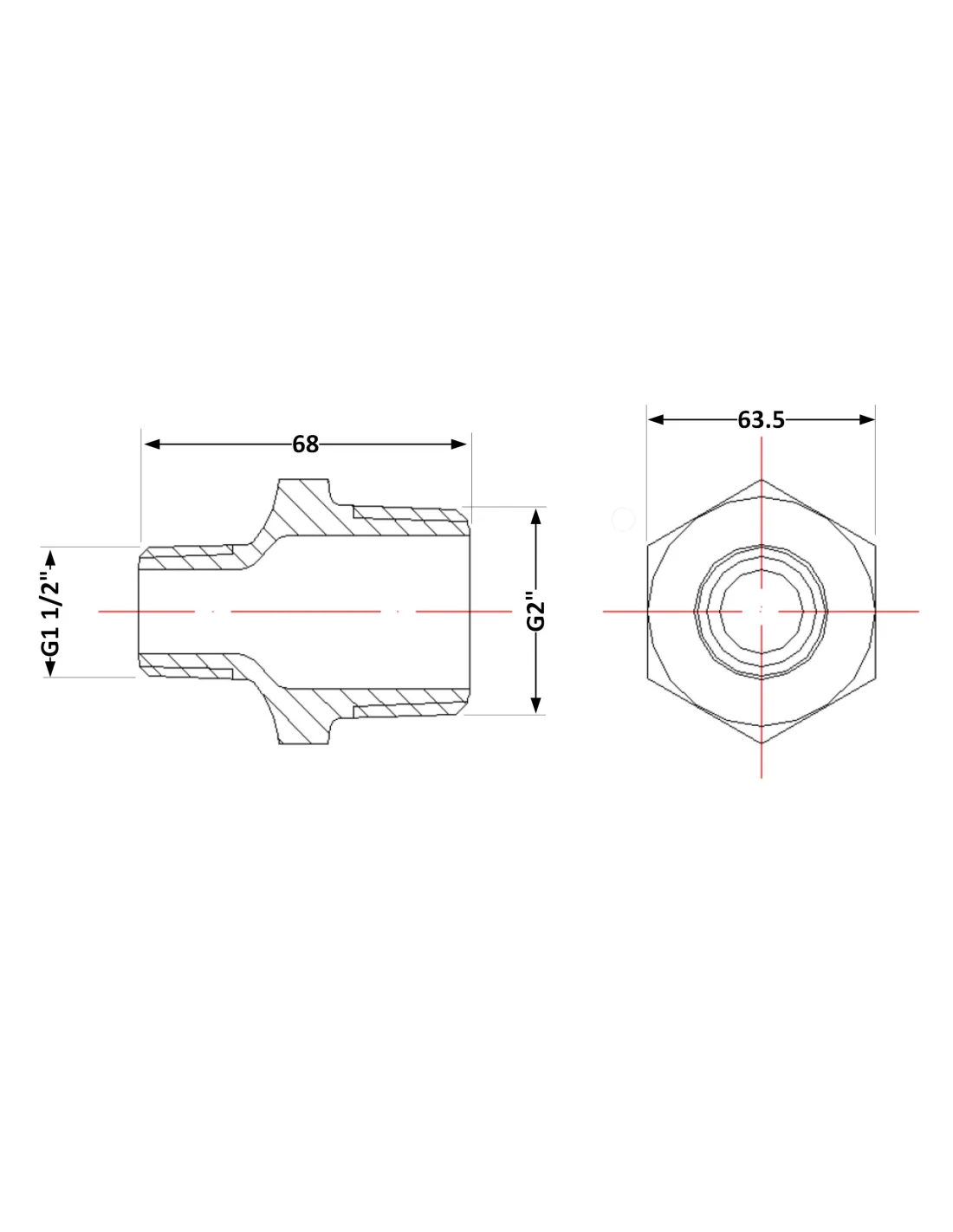 - Тип резьбы: Наружная 2 дюйма с переходом на 1 1/2 дюйма наружная (НР);