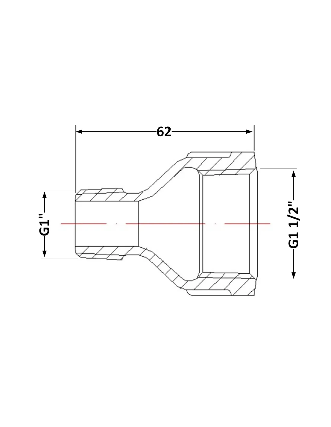 - Тип резьбы: Внутренняя 1 1/2 дюйма с переходом на 1 дюйм наружная (ВН);