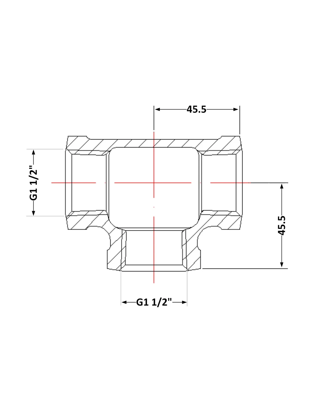 - Тип резьбы: Внутренняя 1 1/2 дюйма (ВР) со всех трех сторон;