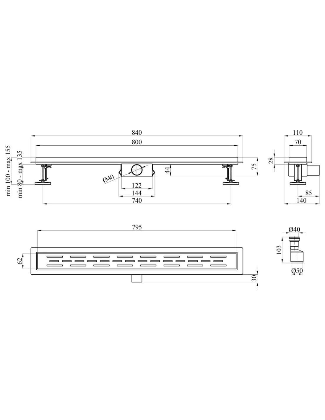 Душевой линейный трап Kroner KRP Eifel L80 Linien обеспечивает эффективный отвод использованной воды из душевой кабины в канализацию. Монтируется в пол. Исключает потребность использования душевого поддона. Корпус трапа выполнен из качественного пластика серого цвета. Данная модель выполнена с прямоугольной накладкой из нержавеющей стали. При необходимости накладка преобразуется в лоток под укладку керамической плитки. Затвор сухой. Длина – 840 мм. Высота трапа регулируется в диапазоне от 100 до 155 мм. Гарантия: 60 месяцев. Страна-производитель – Польша.