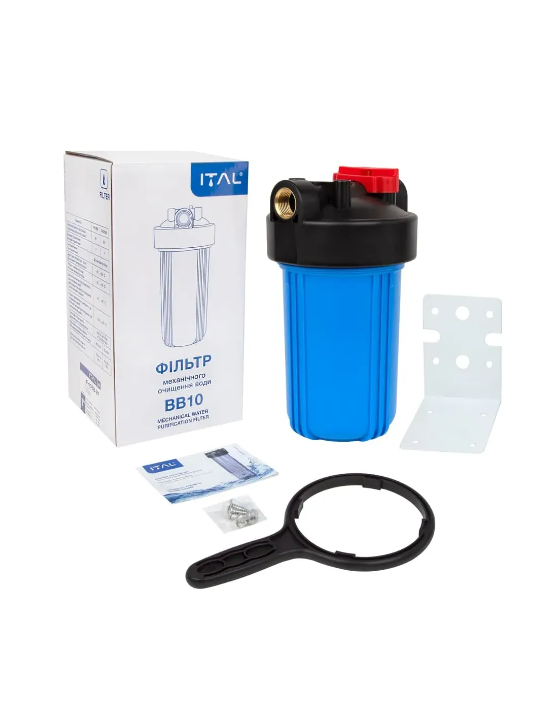 Магистральный фильтр для очистки воды ITAL FH10BB-BT - предназначен для очистки бытовой воды от ржавчины, песка, окалин, активного хлора, органических веществ и тяжелых металлов. В зависимости от типа используемого сменного картриджа, обеспечивает как базовую, так и глубокую очистку воды, при этом напор остается практически без изменений. Данная система универсальна и может комплектоваться различными фильтрующими элементами (картриджами) для решения широкого спектра задач очистки воды. Используя картридж с определенным фильтрующим элементом, можно самостоятельно определять то, от чего будет очищена вода.