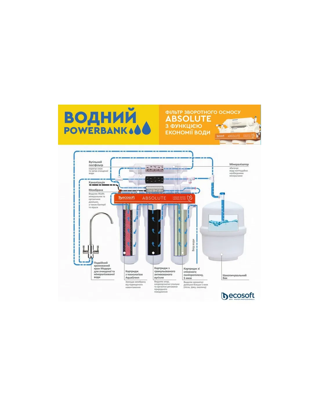 Система обратного осмоса Ecosoft Absolute 6-75M имеет ряд преимуществ по сравнению с конкурентами: