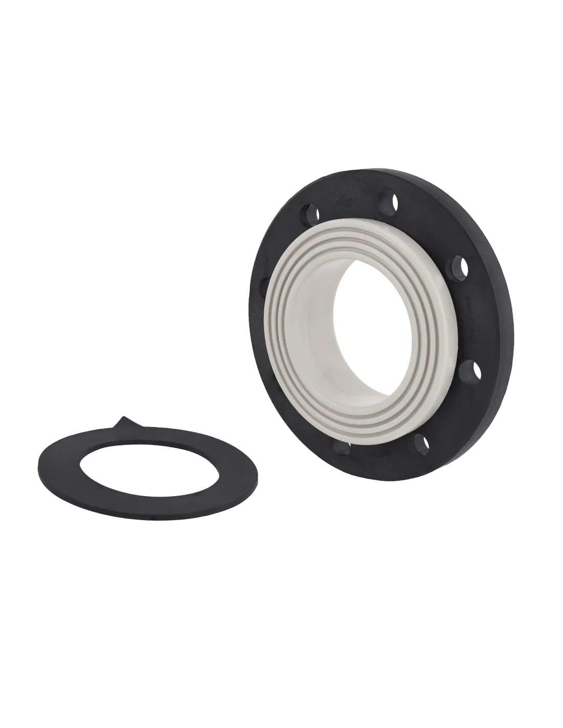 Втулка изготовлена из высокопрочного полипропилена PPR PN20, который сваривается с трубой, а стальной фланец обеспечивает прочность и жесткость для болтового соединения. Разъемная конструкция узла позволяет проводить техническое обслуживание или замену оборудования без необходимости разрезания и повторной сварки трубопровода.