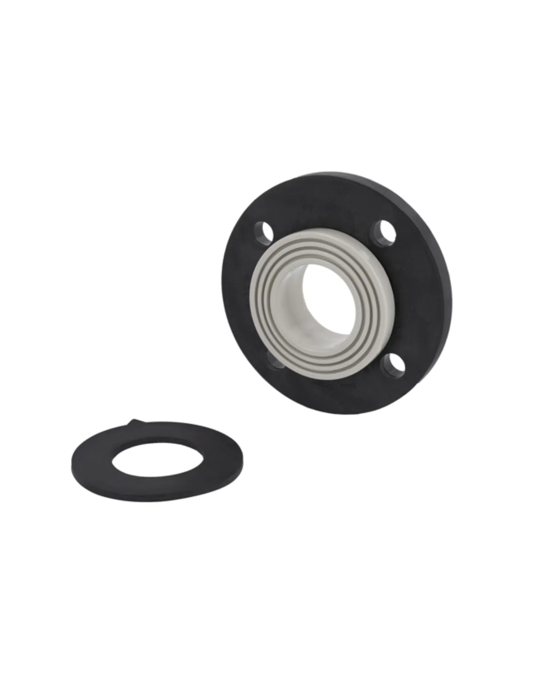 Втулка изготовлена из высокопрочного полипропилена PPR PN20, который сваривается с трубой, а стальной фланец обеспечивает прочность и жесткость для болтового соединения. Разъемная конструкция узла позволяет проводить техническое обслуживание или замену оборудования без необходимости разрезания и повторной сварки трубопровода.