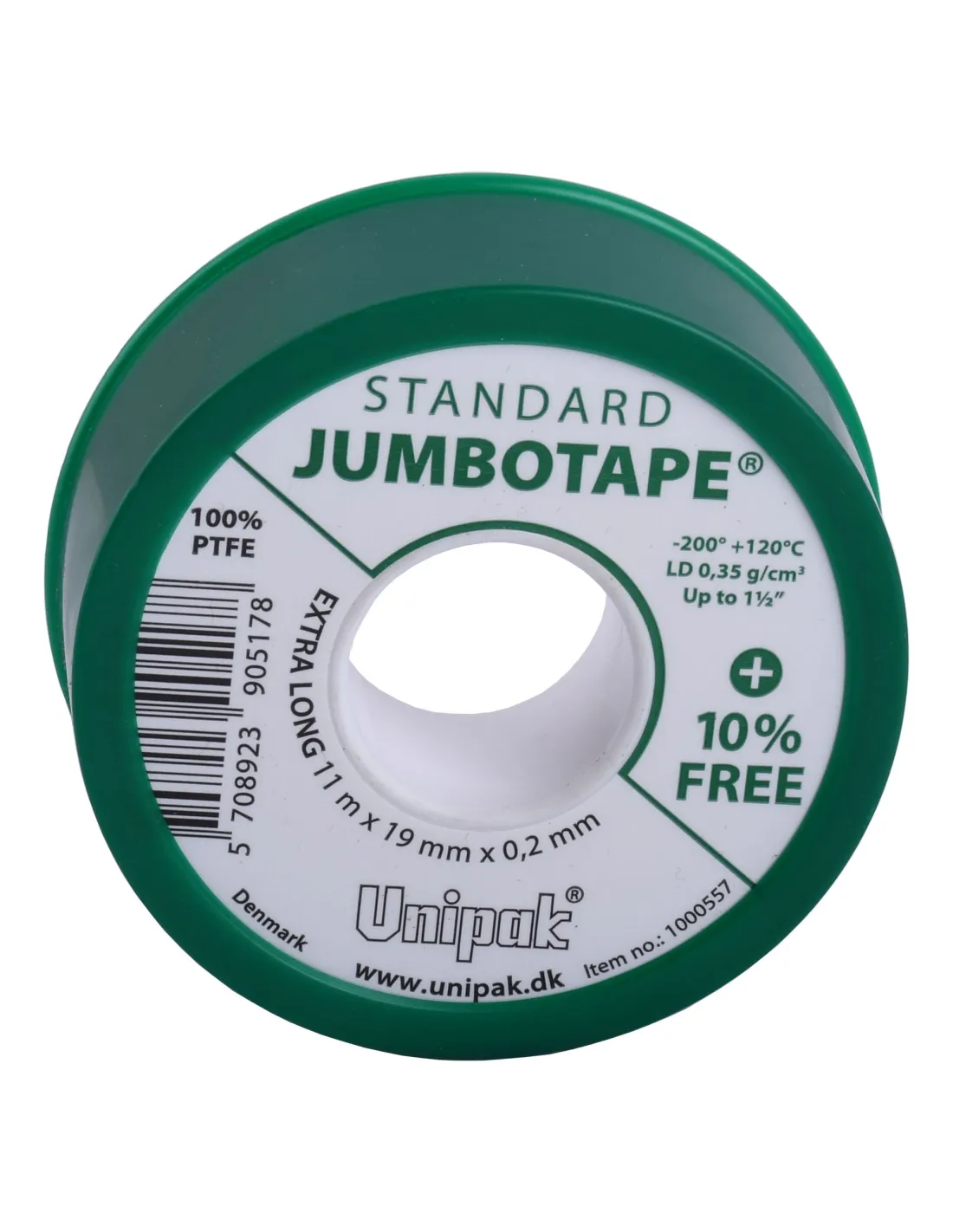 Фум лента тефлоновая Unipak Jumbotape Standard предназначена для уплотнения всех резьбовых соединений при монтаже систем водоснабжения, отопления и вентиляции. Длина - 11 м. Ширина - 19 мм. Толщина ленты – 0,2 мм. Гарантия 12 месяцев. Страна производитель: Дания.