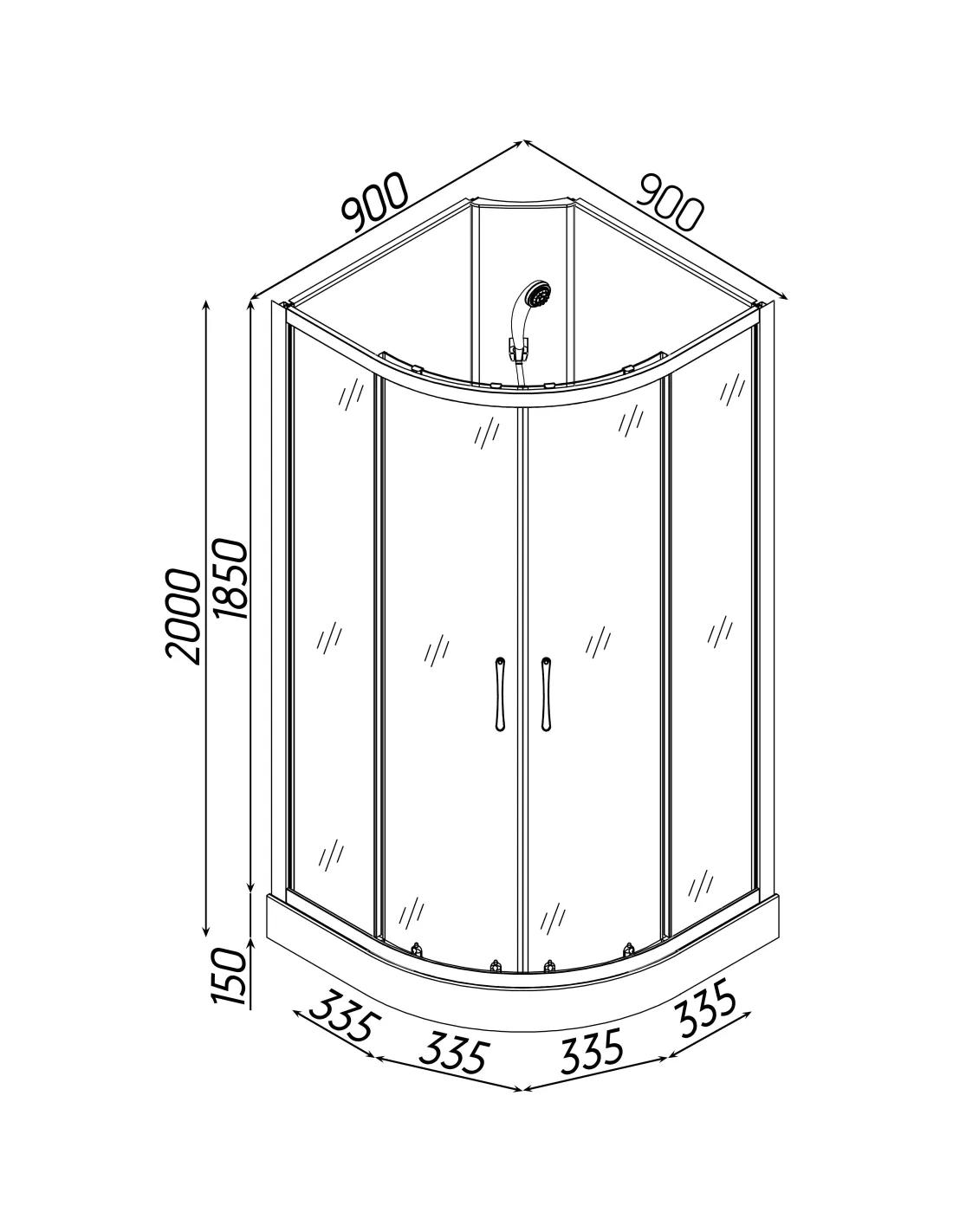 - Габариты поддона (В х Ш х Д): 130 х 900 х 900 мм;