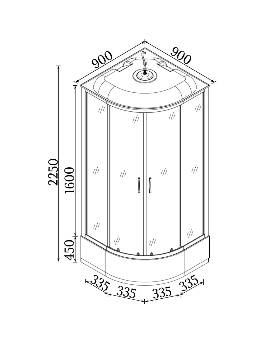 - Габариты поддона (В х Ш х Д): 450 х 900 х 900 мм;