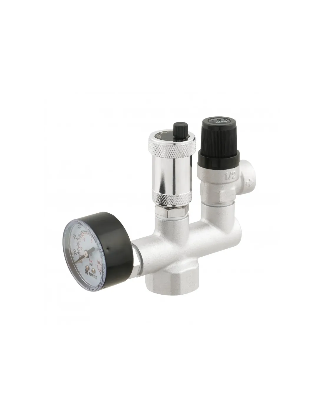 Группа безопасности котла Raftec RBSG033 1 дюйм — обязательный элемент закрытой системы отопления. Устройство защищает оборудование от превышения давления и удаляет воздух из контура. Объединяет манометр, воздухоотводчик и предохранительный клапан на единой латунной консоли.