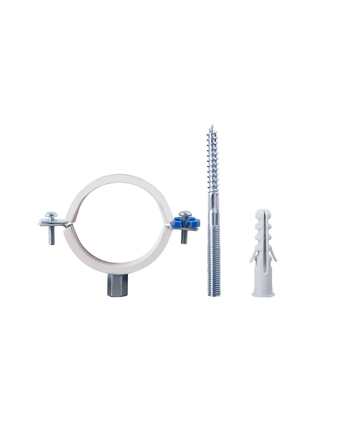 Хомут для трубы Thermo Alliance Forte SF10050 - это крепёжное изделие, состоящее из двух половинок, со стяжными болтами, а также оснащенное вибро - и звукоизолирующим профилем и приваренной соединительной гайкой. Также хомуты укомплектованы шпилькой-саморезом и пластиковым дюбелем, позволяющими произвести монтаж трубы к неподвижной горизонтальной или вертикальной поверхности.
