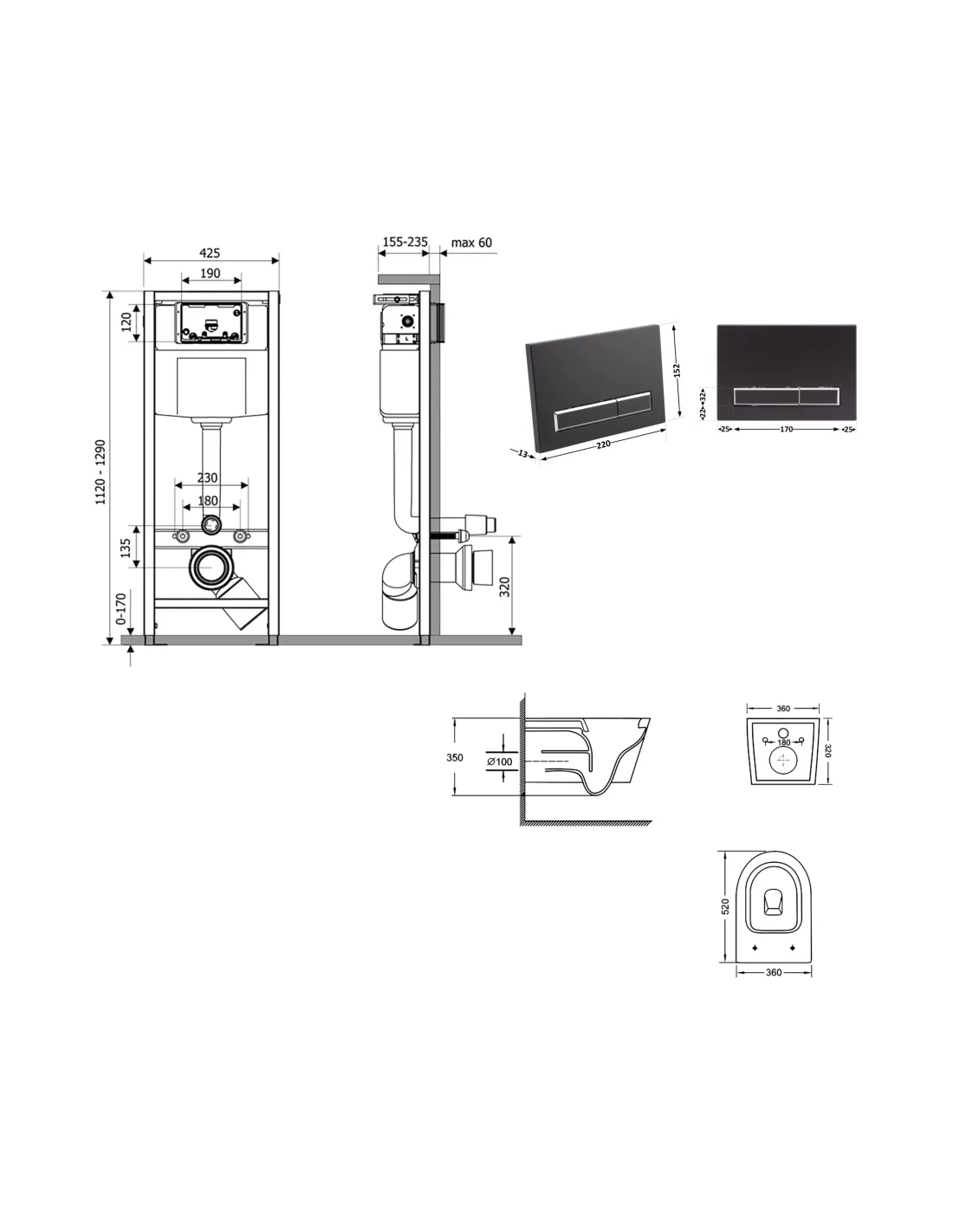 - Габариты панели смыва (ДхШхГ) - 220х13х150 мм;
