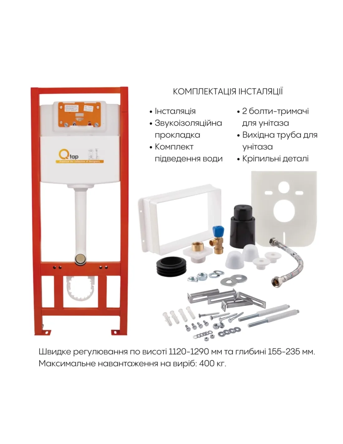 Технические характеристики инсталляции с унитазом Q-Tap Swan Ultra Quiet: