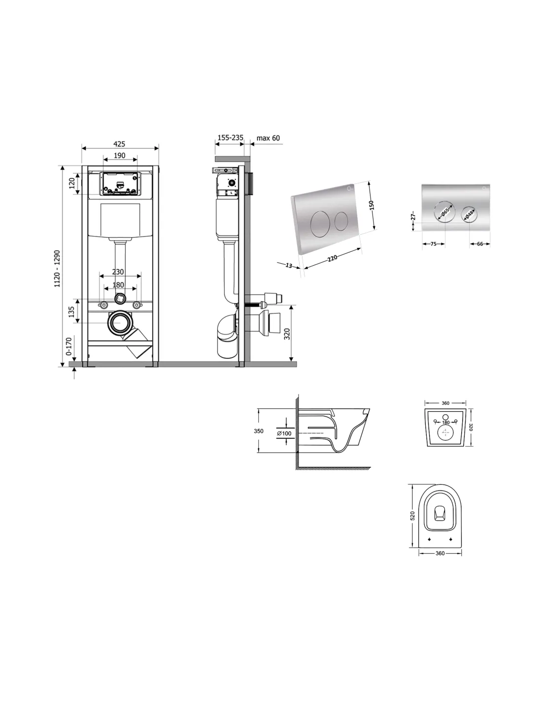 - Габариты инсталляции (ДхШхГ) - 1280х425х185 мм;