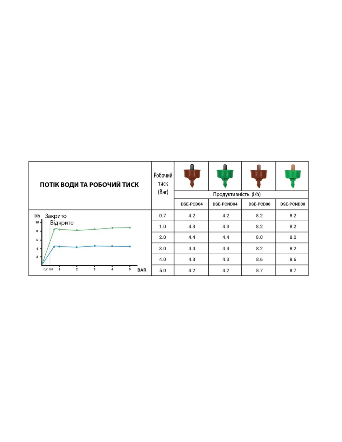 Технические характеристики капельницы для капельного полива Bradas DSE-PCND04:
