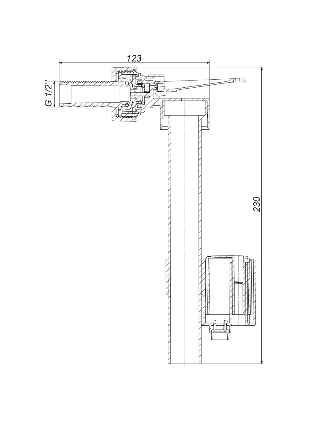 Клапан заполнения бачка унитаза Optimum OPTI 0207 с боковым подключением и пластиковой резьбой 1/2 дюйма