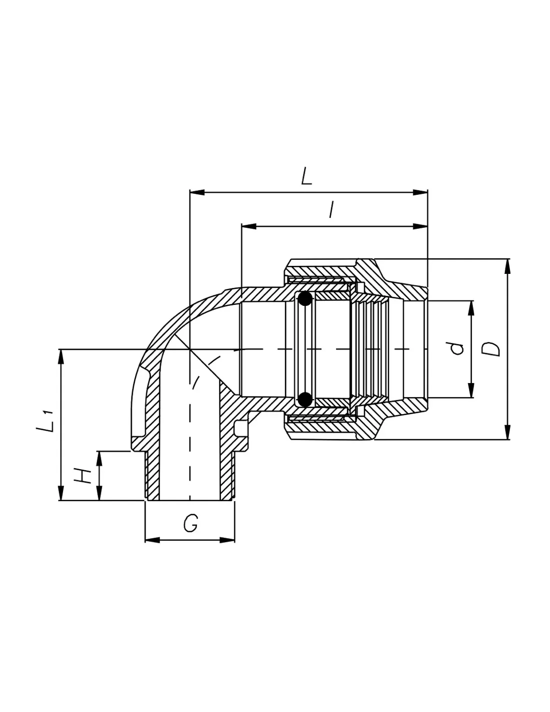 - Уголки для полипропиленовых труб с накидной гайкой