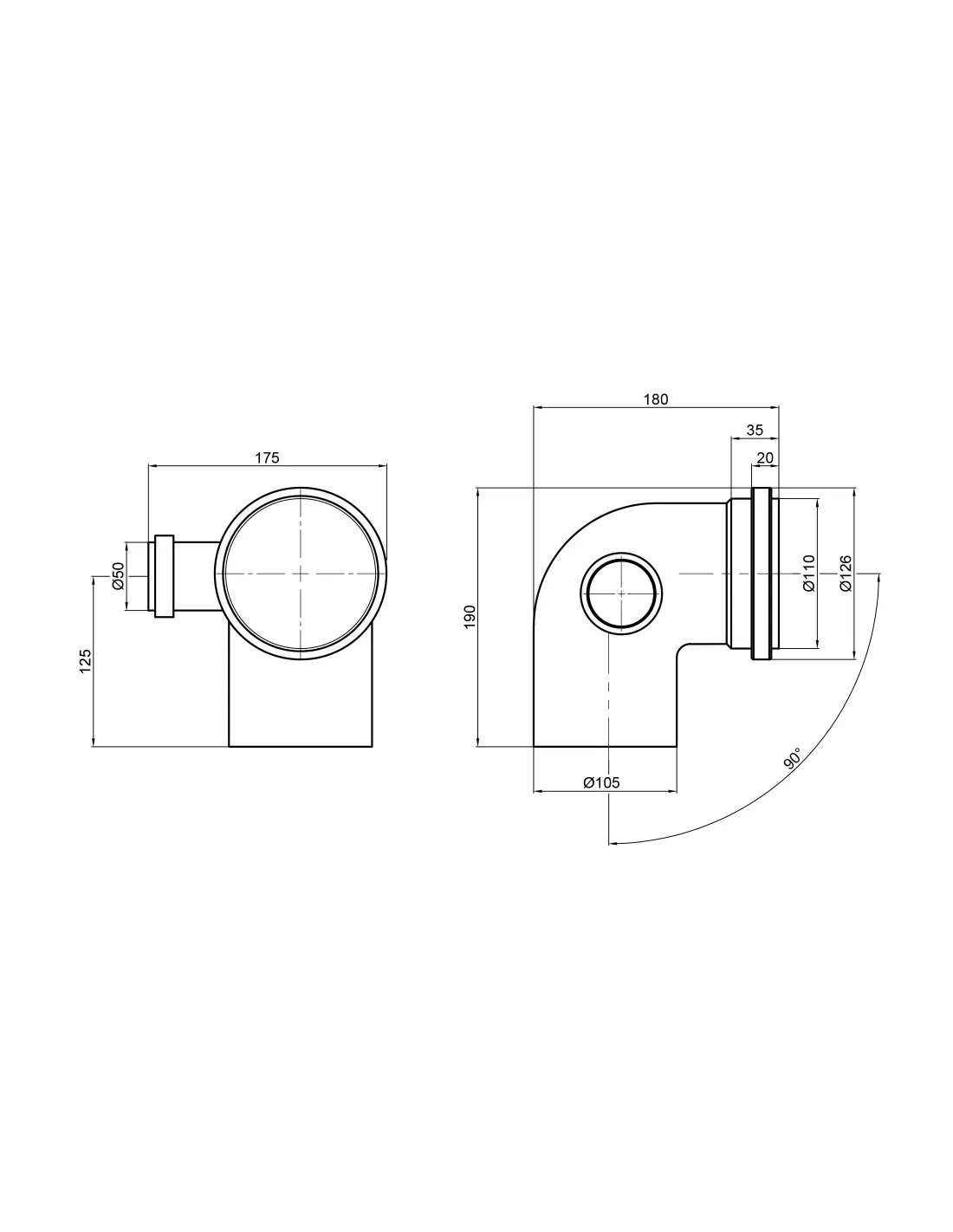 Колено TA Sewage TR110014 50х110х110 мм, для внутренней канализации, с отводом слева