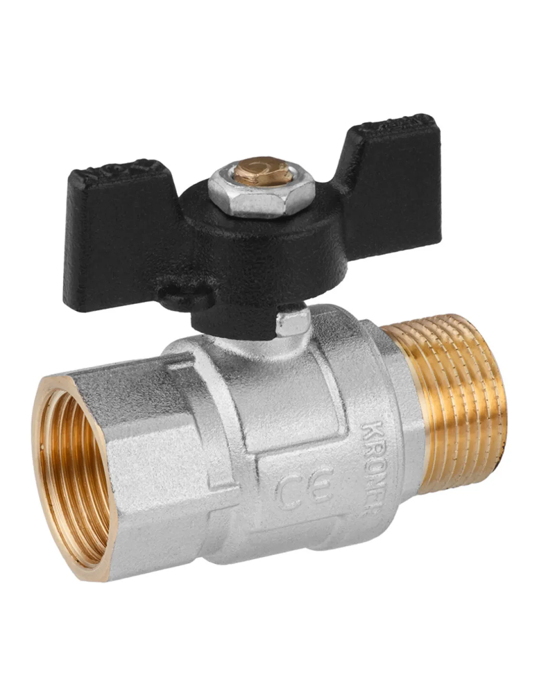 Кран шаровой прямой Kroner ВН PN40 3/4 дюйма, бабочка