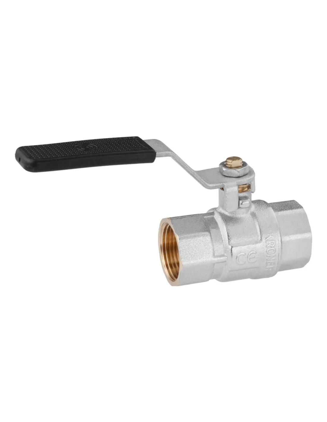Кран шаровой прямой Kroner ВВ PN40 3/4 дюйма, ручка, безопасный в монтаже и использовании. При его изготовлении применяются новейшие технологии, лучшие материалы, благодаря чему является надежным и прочным в процессе эксплуатации. Производится методом горячей ковки, материалом служит латунь, покрытая никелем для устойчивости к высокому давлению и защиты от воздействия всевозможных агрессивных компонентов при создании трубопроводов. Латунные штоки и шаровые затворы, обработанные посредством полирования, исключают закипание несущих деталей запорной арматуры, значительно увеличивая срок эксплуатации.