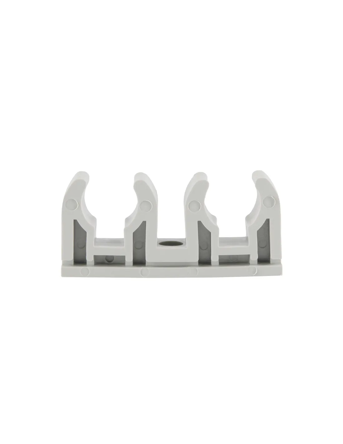 Крепеж двойной (клипса) Blue Ocean d20 предназначен для одновременной, жесткой и параллельной фиксации двух полипропиленовых труб диаметром 20 мм к стене или другой поверхности. Используется для аккуратной и компактной прокладки линий горячего и холодного водоснабжения, а также отопления.