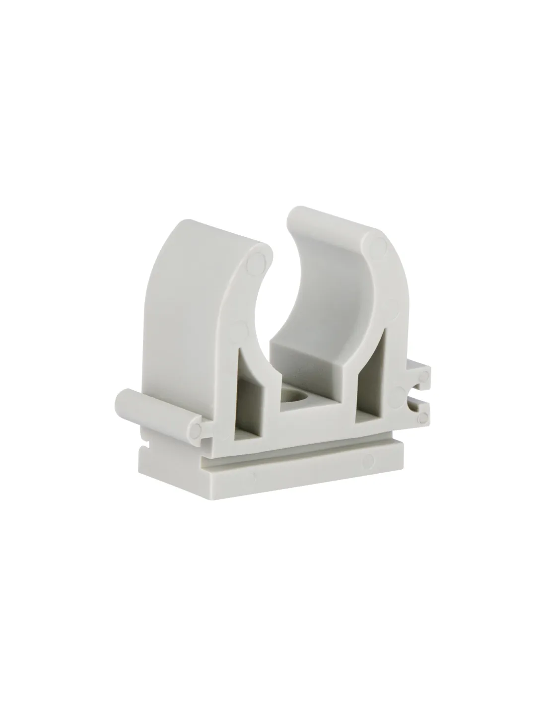 Монтаж крепежа предельно прост: клипса фиксируется к стене с помощью самореза или дюбеля, после чего труба просто защелкивается в ней. Конструкция клипсы позволяет стыковать несколько одинарных элементов для создания непрерывной линии крепления.