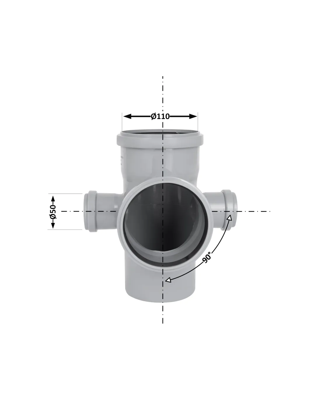 Крестовина TA Sewage CZ110120 110х50 мм угол 90 для внутренней канализации, двухплоскостная
