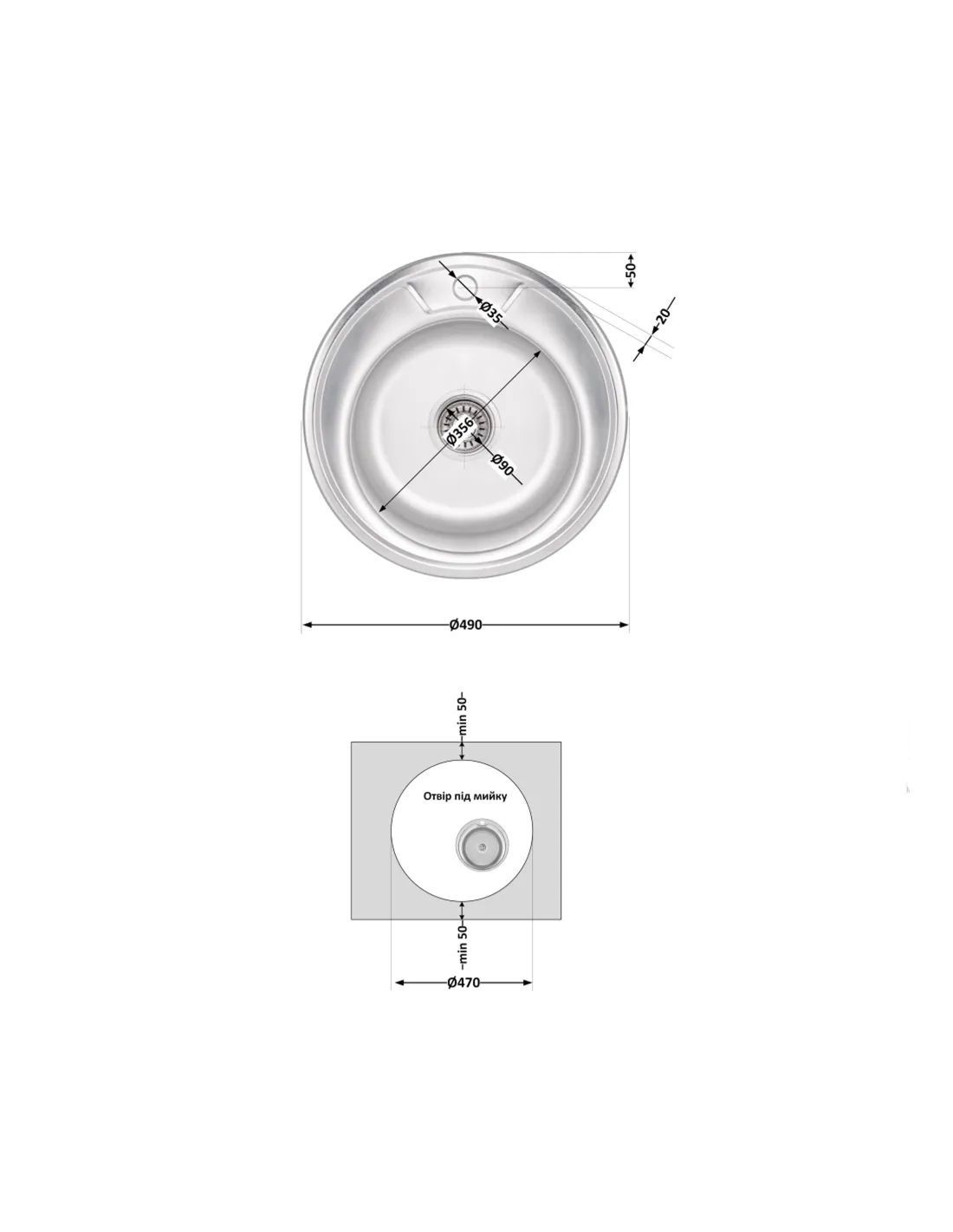 Мойка для кухни круглая Brinex 490-A BRIN490SAT06 Satin 0,6 мм из нержавеющей стали