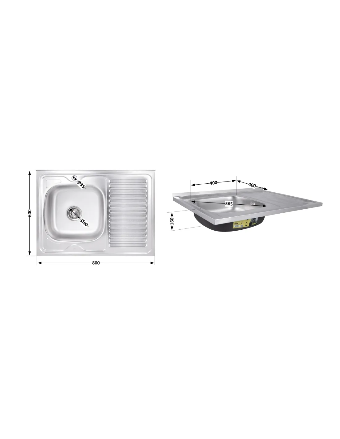 - Размер мойки (Д х Ш х Г): 600 х 800 х 160 мм;