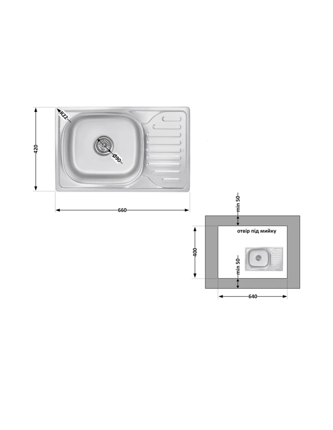 - Длина мойки