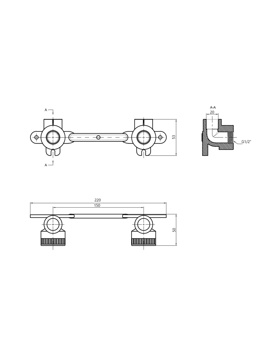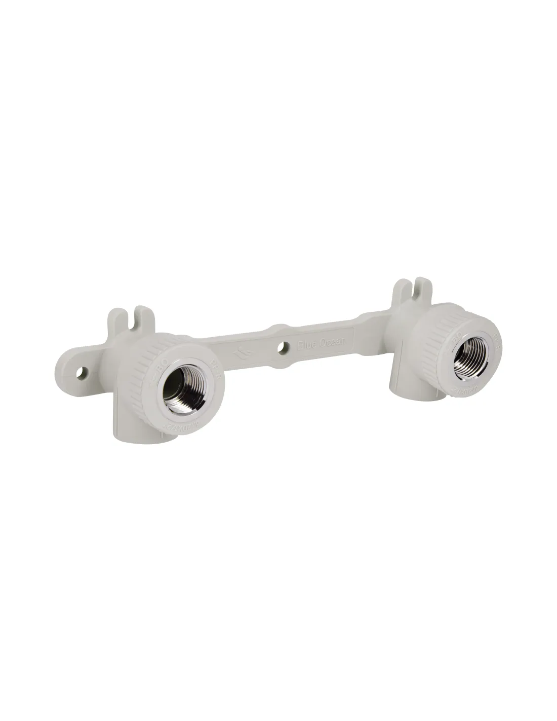 Монтажная планка ВР Blue Ocean 20х1/2 дюйма предназначена для жесткой, стационарной установки и углового вывода двух точек водоснабжения с внутренней латунной резьбой 1/2 дюйма. Она используется для подключения смесителей (горячей и холодной воды) на стандартном межцентровом расстоянии, обеспечивая надежную фиксацию арматуры на стене.