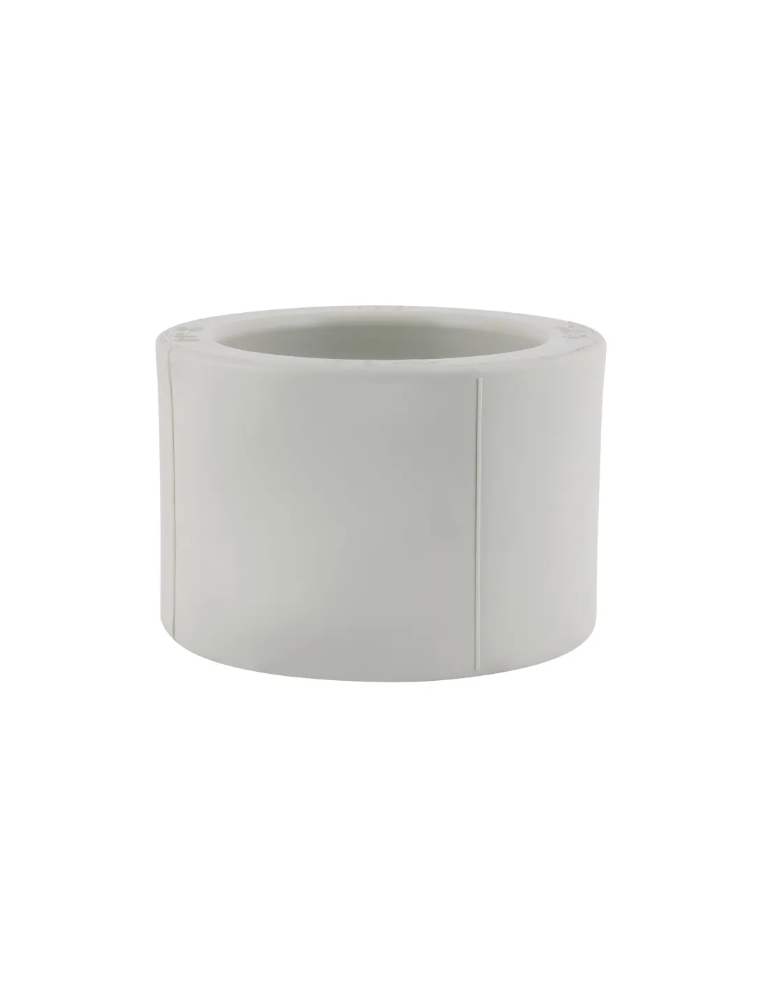 Изделие выполнено из высококачественного полипропилена (PPR PN20), который устойчив к коррозии, агрессивным средам и высоким температурам. Муфта подходит для использования в системах холодного и горячего водоснабжения, а также в отоплении при рабочем давлении до 20 бар.