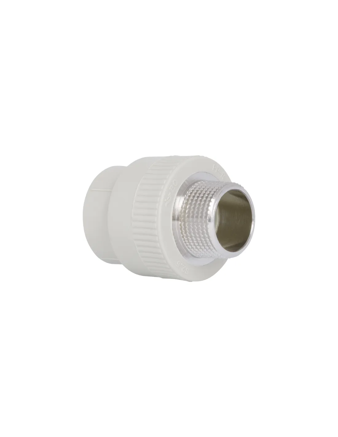 Корпус муфты выполнен из высококачественного полипропилена (PPR PN20), а латунная резьбовая вставка с наружной резьбой 1 дюйм обеспечивает прочное и долговечное соединение. Фитинг выдерживает максимальное рабочее давление 20 бар и подходит для использования как в ХВС, так и в ГВС.