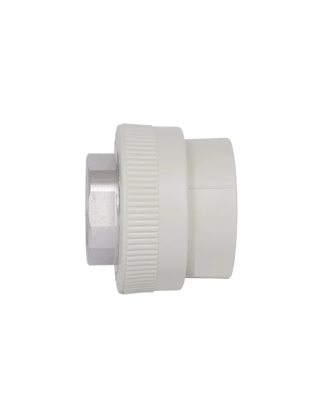 Монтаж PPR-части осуществляется методом раструбной термической сварки. Комбинированная муфта незаменима для подключения запорной арматуры, коллекторов или других элементов, требующих наружной резьбы 1 дюйм.
