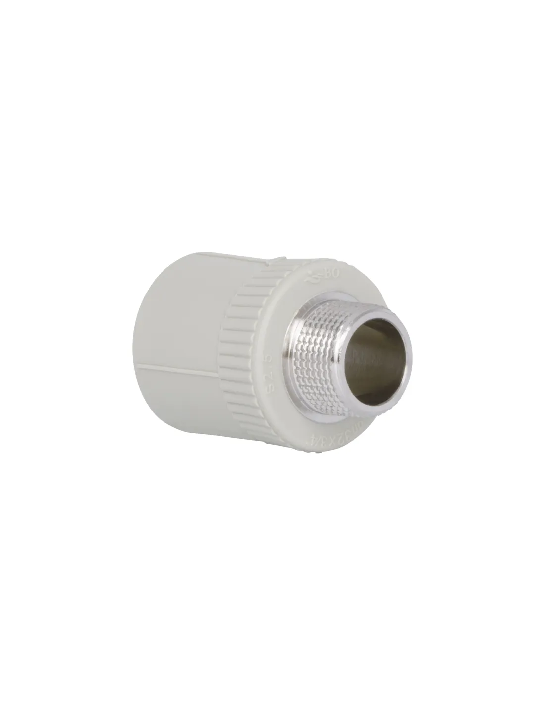 Корпус муфты выполнен из высококачественного полипропилена (PPR PN20), а латунная резьбовая вставка с наружной резьбой 3/4 дюйма обеспечивает прочное и долговечное соединение. Фитинг выдерживает максимальное рабочее давление 20 бар и подходит для использования как в ХВС, так и в ГВС.