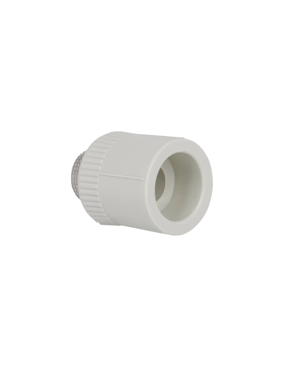 Монтаж PPR-части осуществляется методом раструбной термической сварки. Комбинированная муфта незаменима для подключения запорной арматуры, коллекторов или других элементов, требующих наружной резьбы 3/4 дюйма.