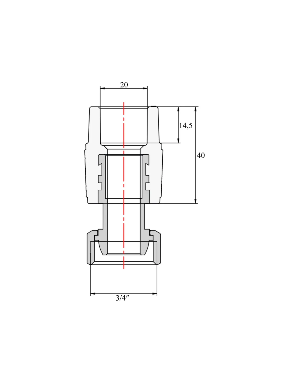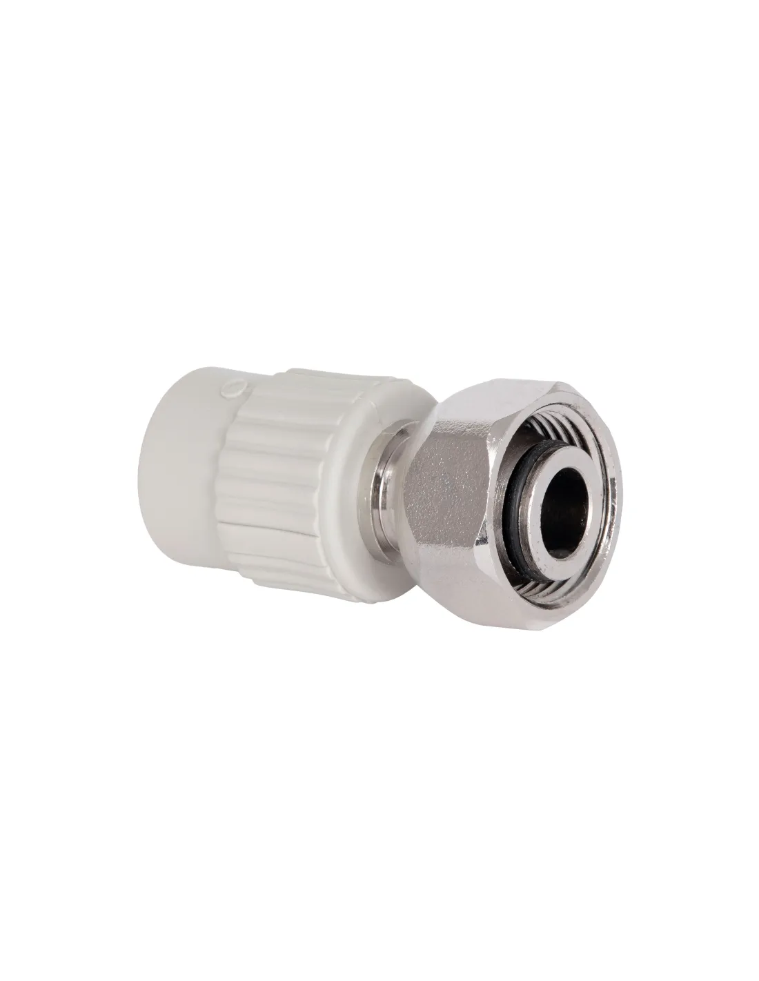 Фитинг выполнен из PPR PN20 с латунной вставкой, что гарантирует высокую прочность и устойчивость к высоким температурам и давлению до 20 бар. Разъемная конструкция позволяет легко демонтировать радиатор или арматуру без необходимости разрезания трубы.