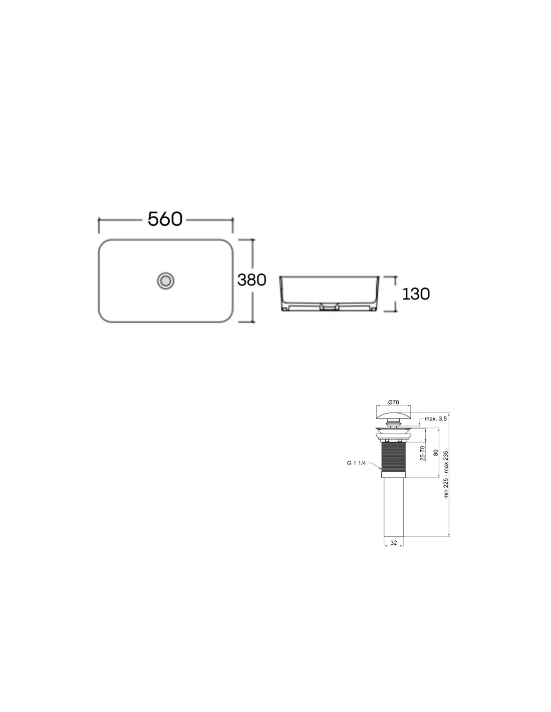 - Габариты раковины: 560x380x130 мм;