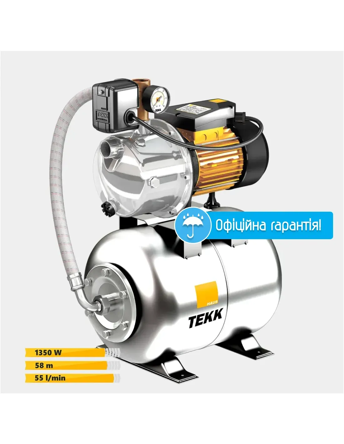 Насосная станция Tekk Haus BS 1100 Inox 24L Inox 1,1 кВт, бак 24 литра