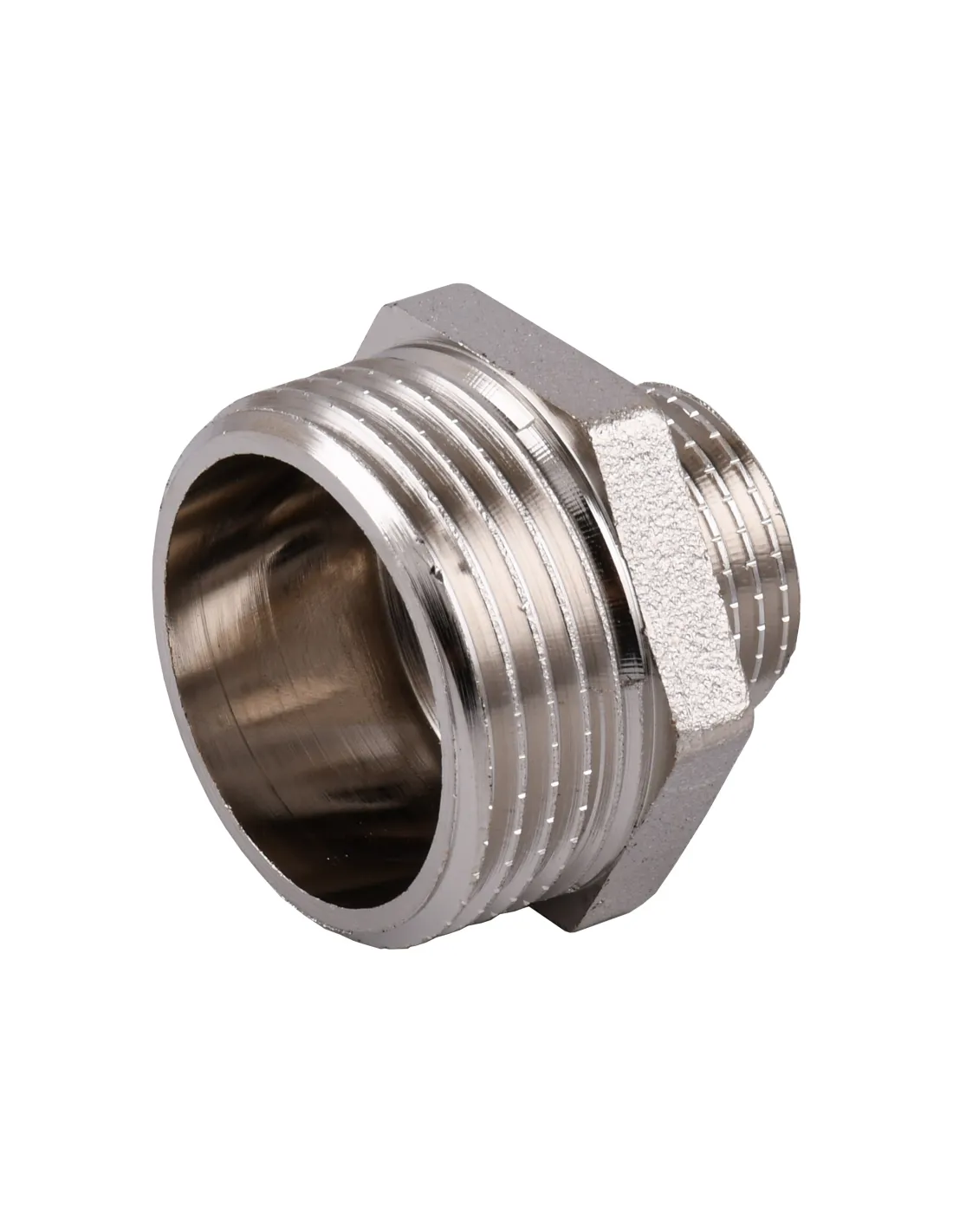 Ниппель редукционный Optimum NN532G 1 х 1/2 дюйма НР, никелированный под прокладку – надежный переходной элемент с защитным покрытием. Специальная проточка под прокладку обеспечивает идеальную герметичность без лишних усилий при монтаже.