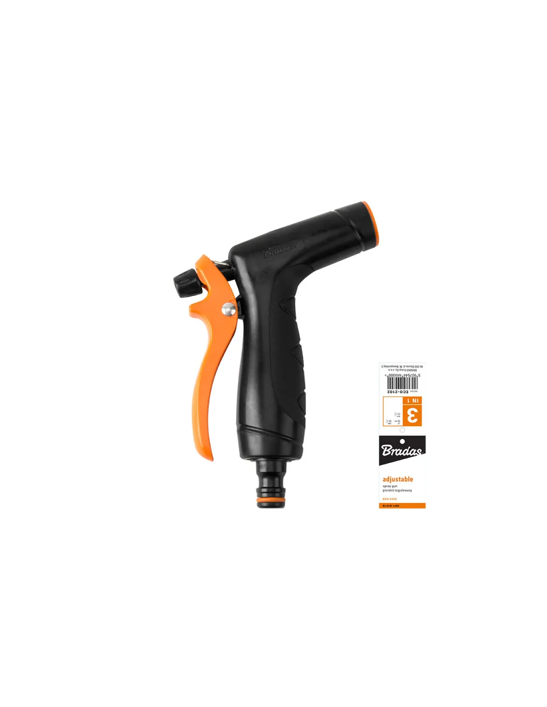 Пистолет для полива Bradas Black Line ECO-2102 имеет 3 режима работы. Пистолет легко подключается к садовому шлангу с помощью коннектора.