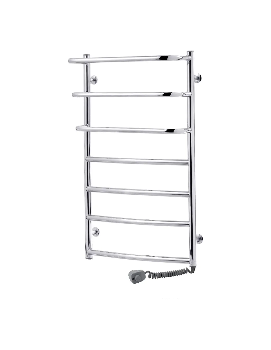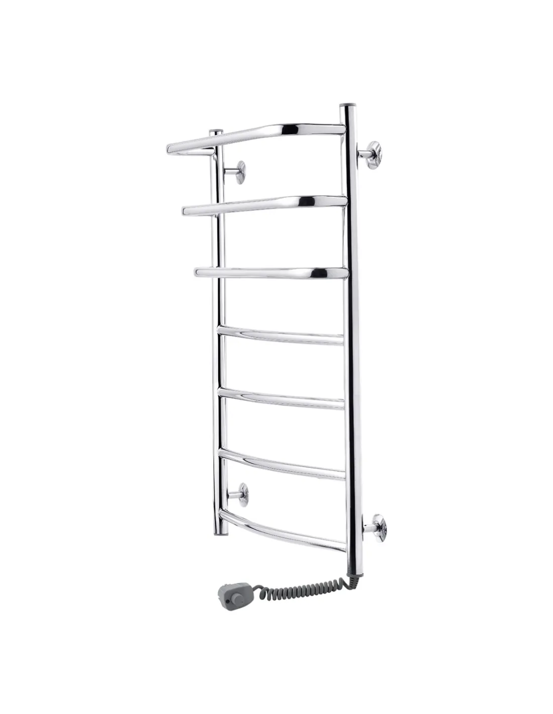 Электрический полотенцесушитель Kroner Каскад дуга ДКД03ER 900x500/7 ER выполнен из нержавеющей стали SUS301 с глянцевой поверхностью, оснащен ТЭН и встроенным терморегулятором. Он быстро нагревается и поддерживает температуру до 60 градусов Цельсия. Подключение к сети осуществляется через электрический провод с вилкой.