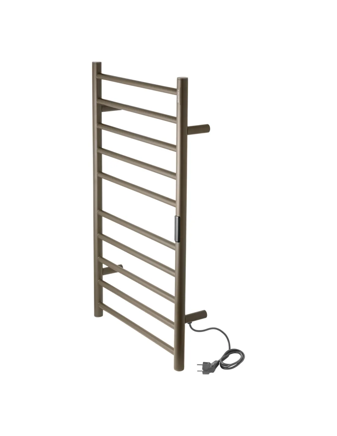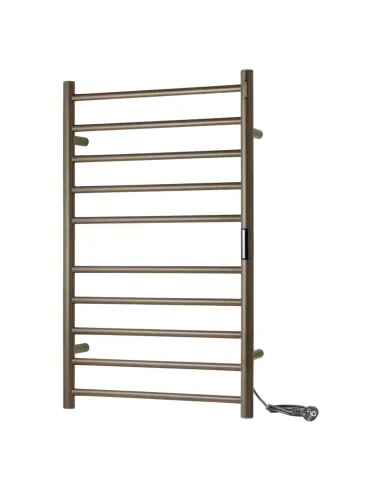 Электрический полотенцесушитель Kroner KRP Hitze-Stets GRP8753-10T выполнен из нержавеющей стали SUS301 с матовой поверхностью цвета хаки, оснащен ТЭН и сенсорным терморегулятором. Он быстро нагревается и поддерживает температуру до 60 градусов Цельсия. Управление режимами работы осуществляется через сенсорную панель. Подключение к сети осуществляется через электрический провод с вилкой.