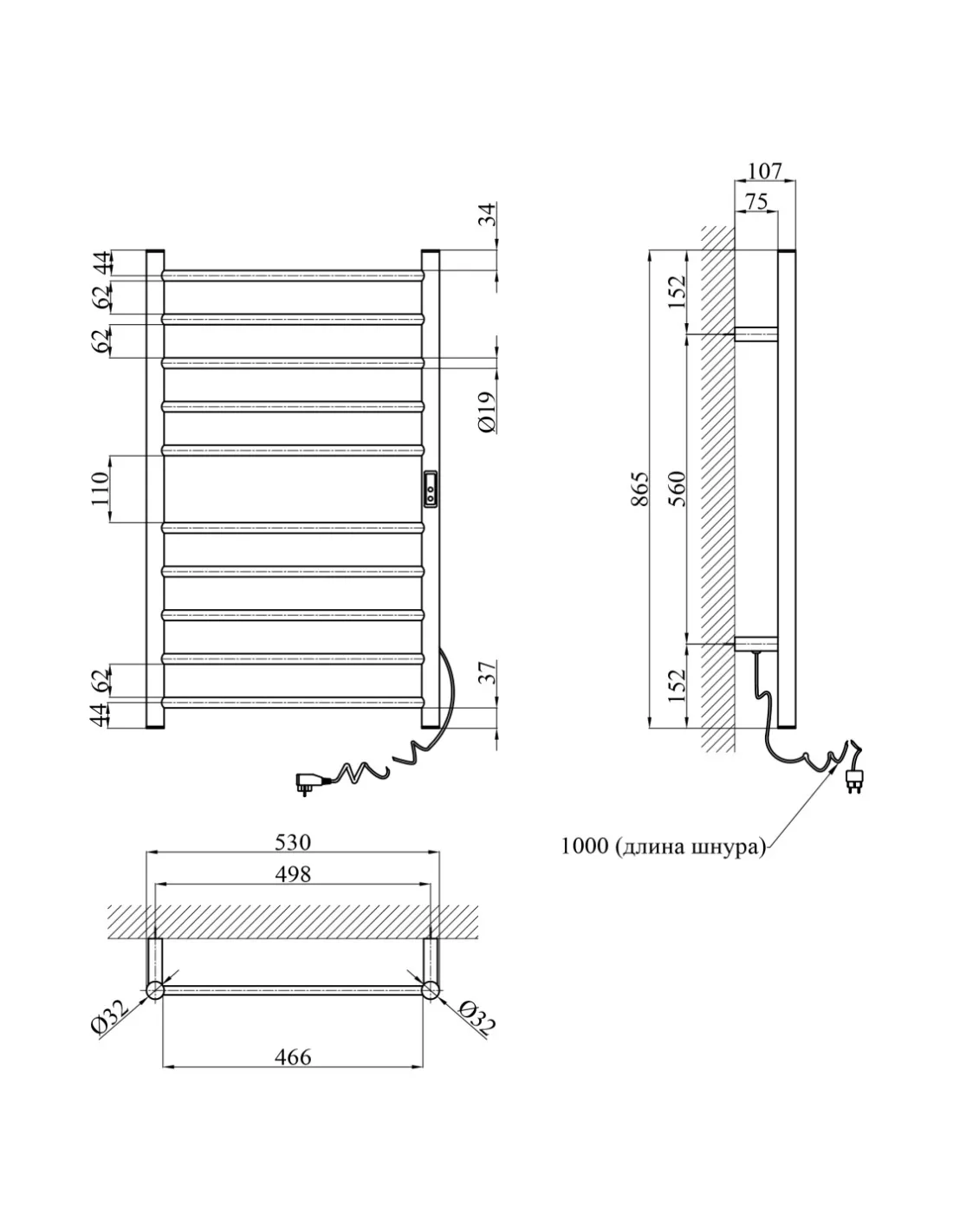 - Размеры – 865х530х107 мм;