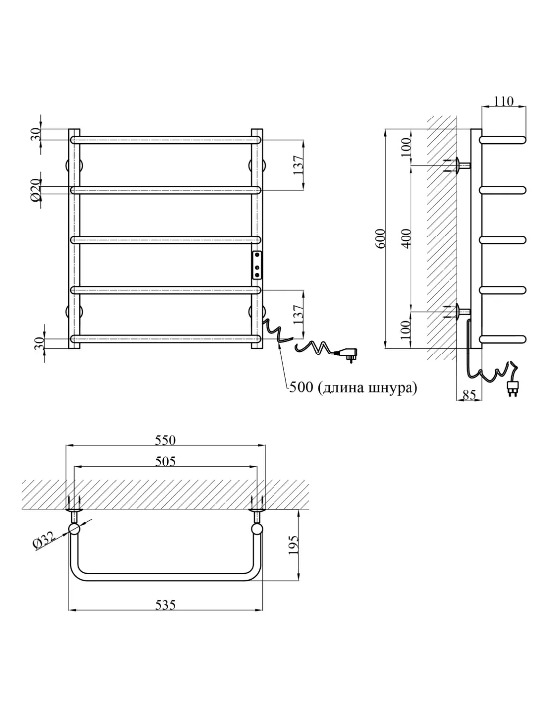 Полотенцесушитель электрический Kroner KRP Stil ER600x500-5 предназначен для использования в ванной комнате. Кроме сушки полотенец, на нем можно сушить белье после стирки, а также дополнительно обогревать Вашу ванную комнату. Габариты изделия 600 мм - высота, 550 мм - ширина, 195 мм - глубина. Тип установки - настенный. Подключение к сети осуществляется через электропровод с вилкой. Для регулировки температуры и режимов работы предусмотрен терморегулятор. Гарантия на изделие 12 месяцев (на встроенный термоконтроллер); 20 лет на сварную конструкцию. Страна-производитель - Украина.