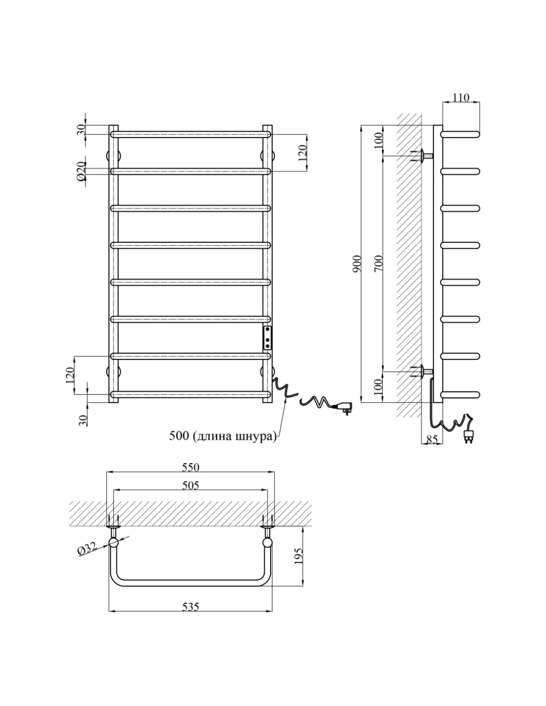 Полотенцесушитель электрический Kroner KRP Stil ER900x500-8 предназначен для использования в ванной комнате. Кроме сушки полотенец, на нем можно сушить белье после стирки, а также дополнительно обогревать Вашу ванную комнату. Габариты изделия 900 мм - высота, 550 мм - ширина, 195 мм - глубина. Тип установки - настенный, правое подключение. Принцип работы - подключение к сети 220 В. Для регулировки температуры и режимов работы предусмотрен встроенный терморегулятор. Гарантия на изделие 12 месяцев (термоконтроллер), 20 лет (сварная конструкция). Страна-производитель - Украина.