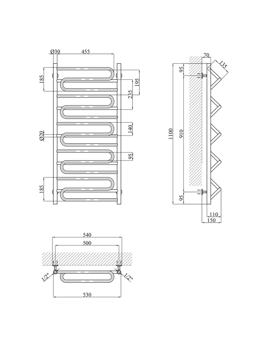 Водяной полотенцесушитель Kroner Иллюзия ДИ07 1100х530 - это сочетание надежности и удобства использования в ванной комнате. Подойдет для интерьера ванной комнаты, в которой учитывается всё до мелочей. Кроме сушки полотенец, на нем можно сушить белье после стирки, а также дополнительно обогревать Вашу ванную комнату.