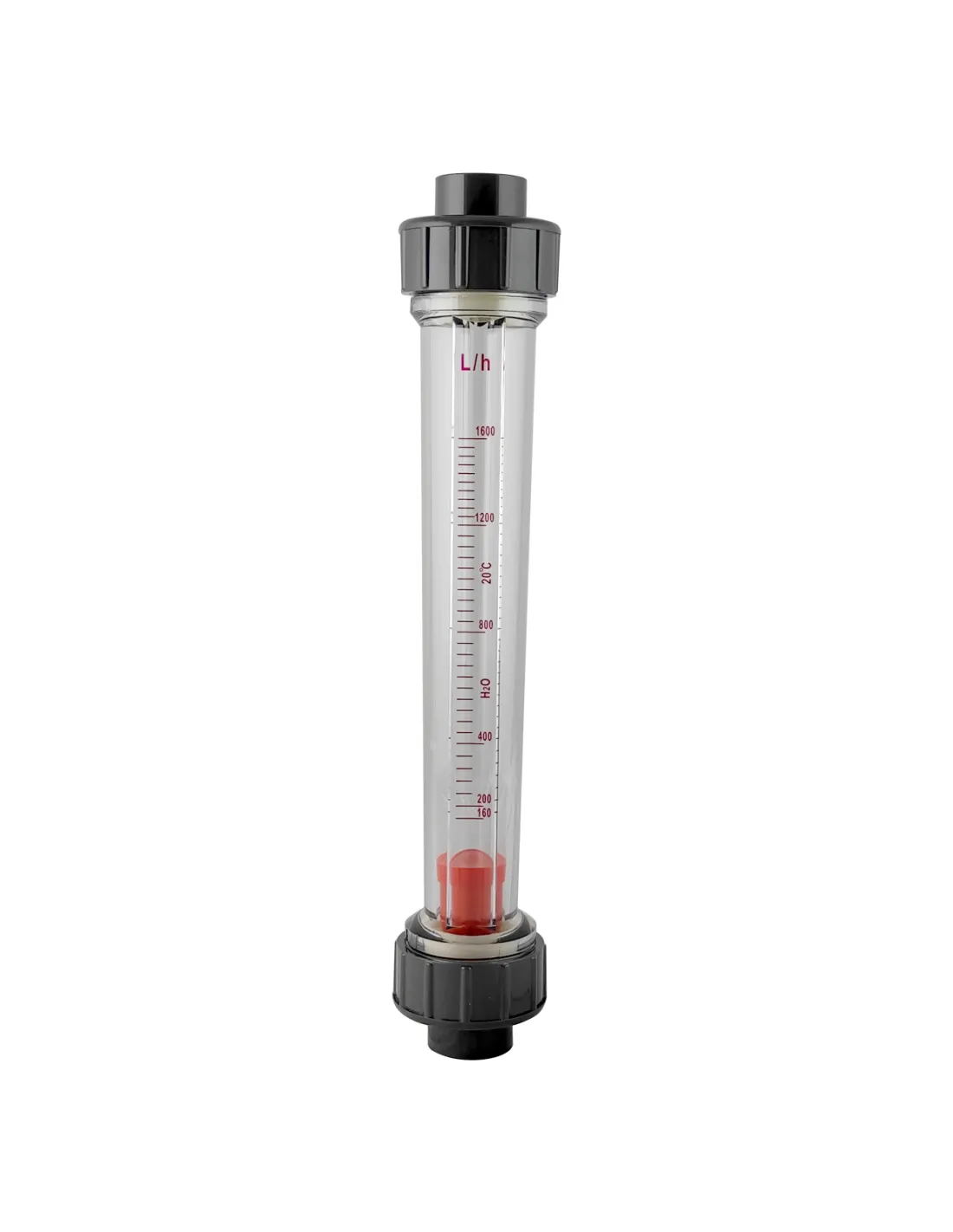 Ротаметр трубного типа Raifil LZS-25 160-1600 – прибор определения объемного расхода воды за единицу времени. Состоит из прозрачного корпуса с отсеком для воды и поплавка. В зависимости от интенсивности потока поплавок поднимается на определенный уровень, которому соответствует значение на шкале. Монтируется на вертикальном трубопроводе с направлением течения снизу вверх. Измерение скорости потока воды L/H от 160 до 1600 литров в час.